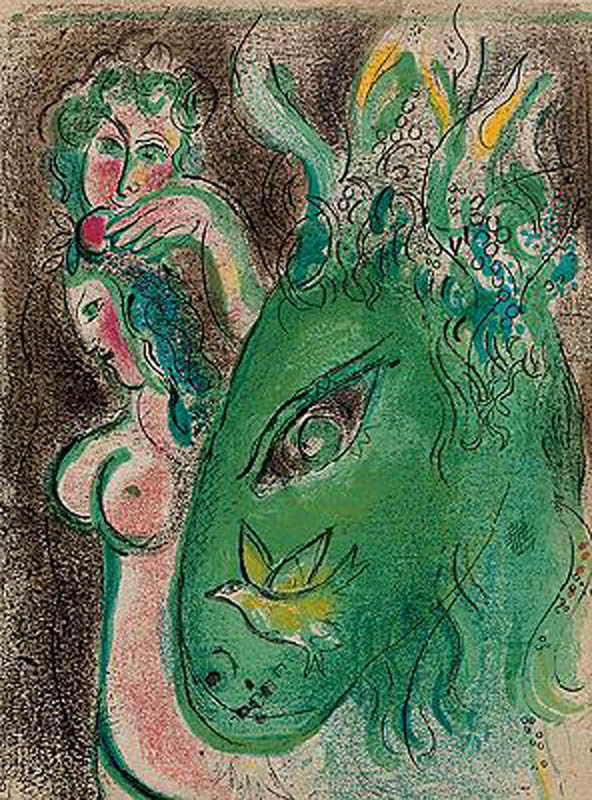 Paradies- Der grüne Esel / Original-Farblithografie, Bildgröße 35x26 cm, Mourlot 233, 1960, Bibel II