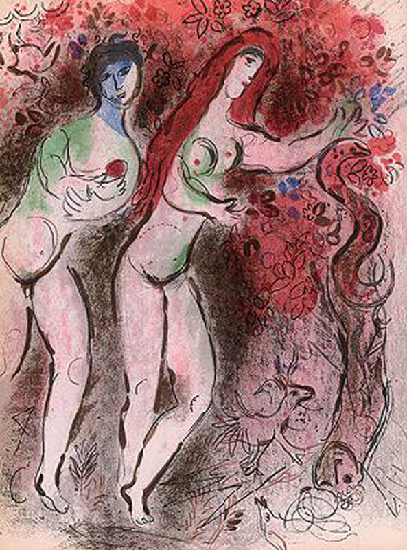 Adam und Eva und die verbotene Frucht / Original Farblithografie, Bildgöße 35x26 cm, Mourlot 235, 1960, Bibel II