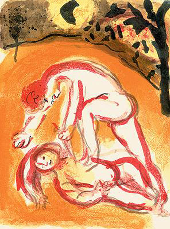 Kain und Abel / Original Farblithografie, Bildgröße 36x25 cm, Mourlot 238, 1960, Bibel II