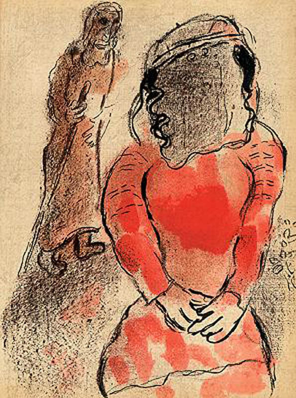 Thamar, die Schwiegertochter Judas / Original Farblithografie, Bildgröße 35x26 cm, Mourlot 243, 1960, Bibel II
