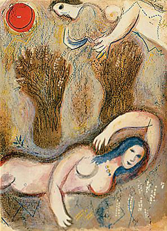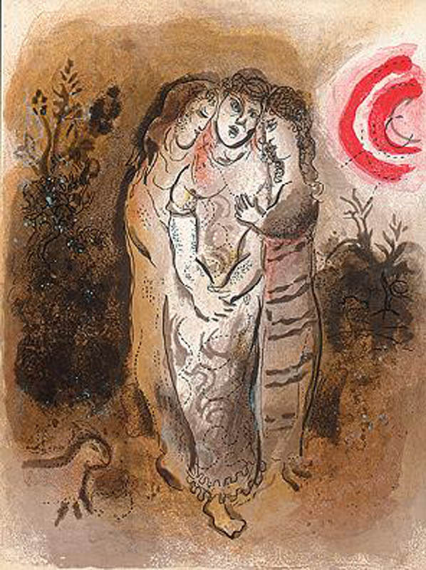 Naemi und ihre Schwiegertöchter / Original Farblithografie, Bildgröße 35x26 cm, Mourlot 245, 1960, Bibel II