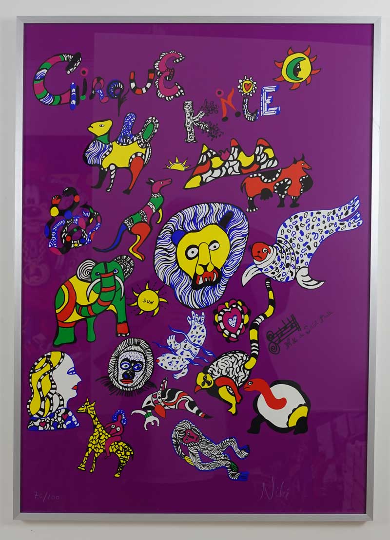 Niki de Saint Phalle wurde 1930 in Neuilly-sur-Seine in Frankreich geboren. Sie wuchs in den USA auf und avancierte an der Seite von Jean Tinguely zum Star des Nouveau Réalisme. Mit ihren oft erotisch aufgeladenen Motiven gilt Niki de Saint Phalle als Vorreiterin der feministischen Kunst des 20. Jahrhunderts; ihre einst skandalumwitterten „Nanas“ – voluminöse, fröhlich bunte Frauenfiguren – werden heute als Ikonen einer sinnlichen, selbstbestimmten Weiblichkeit gedeutet. Sie versucht das in den 50er und 60er Jahren herrschende Bild der Frau zu entlarven. Mit ihren Arbeiten wird sie zu internationalen Ausstellungen in New York, Nizza und Paris eingeladen. Niki de Saint Phalle verstarb 2002 in San Diego.