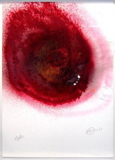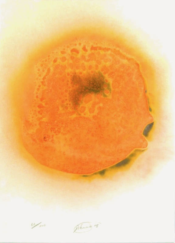 Sonnenflecken, Reliefsiebdruck 2013, Bildgröße 57 x 40 cm, Auflage 100 Exemplare, nummeriert und handsigniert, gerahmt in Weissgold-Modellrahmen, leider vergriffen