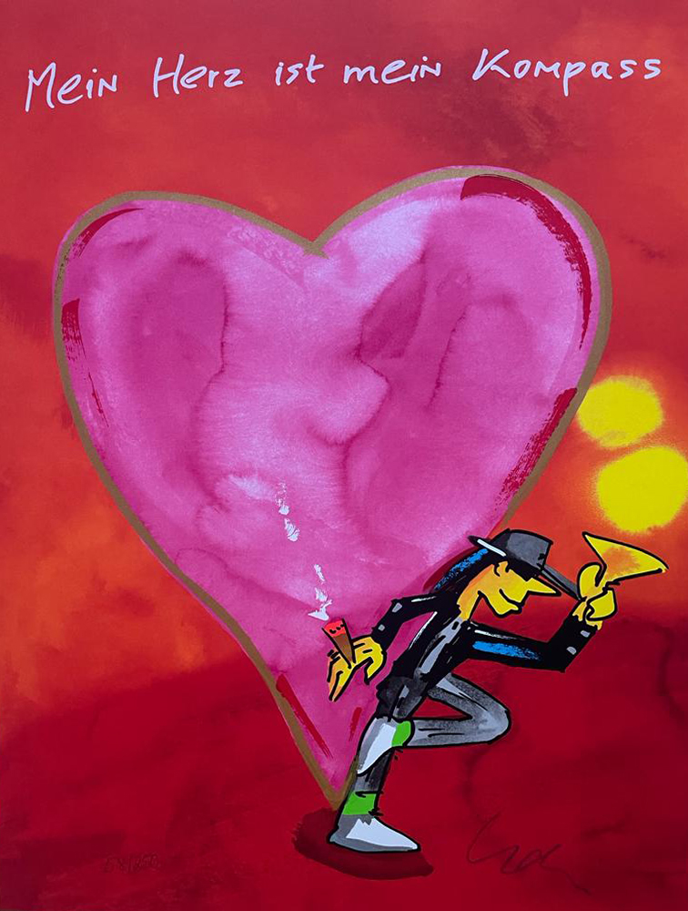 Mein Herz ist mein Kompass, Original Siebdruck von Udo Lindenberg, 42 x 56 cm, Auflage 250, nummeriert und handsigniert, leider vergriffen