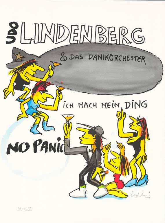Udo Lindenberg, Original Siebdruck, Panikorchester, Blattgröße 42 x 56 cm, Auflage 250, nummeriert und handsigniert, leider vergriffen
