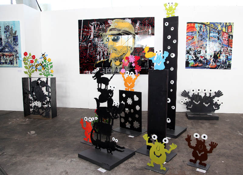 Acrylbilder von S. Firla und "Monster" von Patrick Preller anlässlich der Ausstellung der Galerie Firla aus Bonn in der Ausstellungshalle in Siegburg
