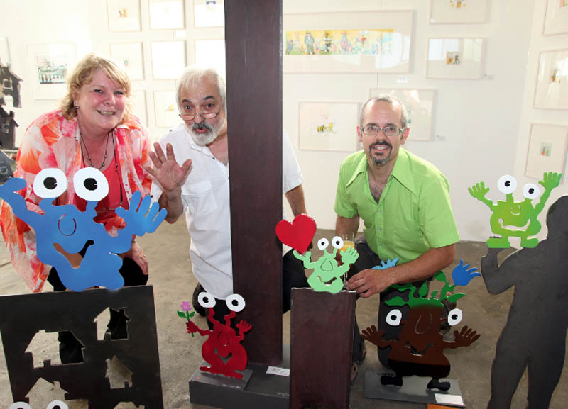 "Monsterskulpturen" mit dem Künstler Patrick Prellet, Galerist S. Firla und C. Firla