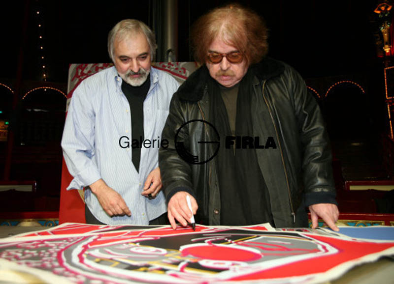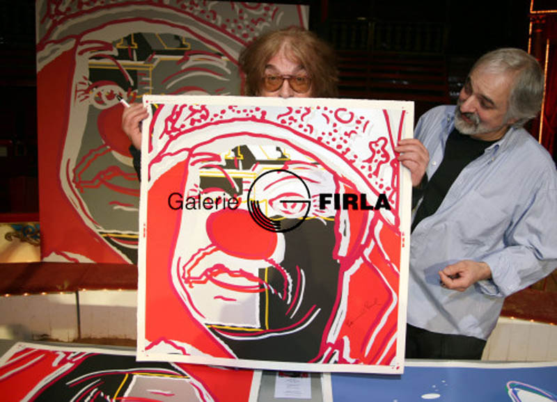 Bernhard Paul signiert den Siebdruck von S. Firla am Abend der Vernissage im Circus Roncalli in Bonn 2007