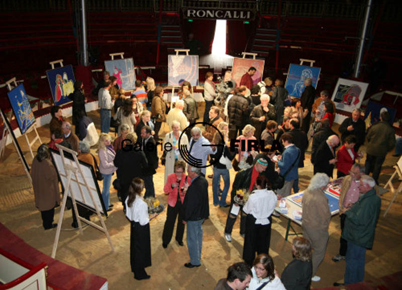 Vernissage auf Sägemehl in der Manege des Circus Roncalli am 30.04.07 von der Galerie Firla aus Bonn