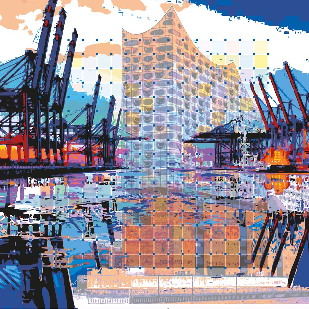 Hamburger Impressionen, Elphi , Hafen, Alu-Dibond mit Lack gehöht, 100 x 100 cm, Auflage 30, nummeriert und handsigniert, Preis auf Anfrage