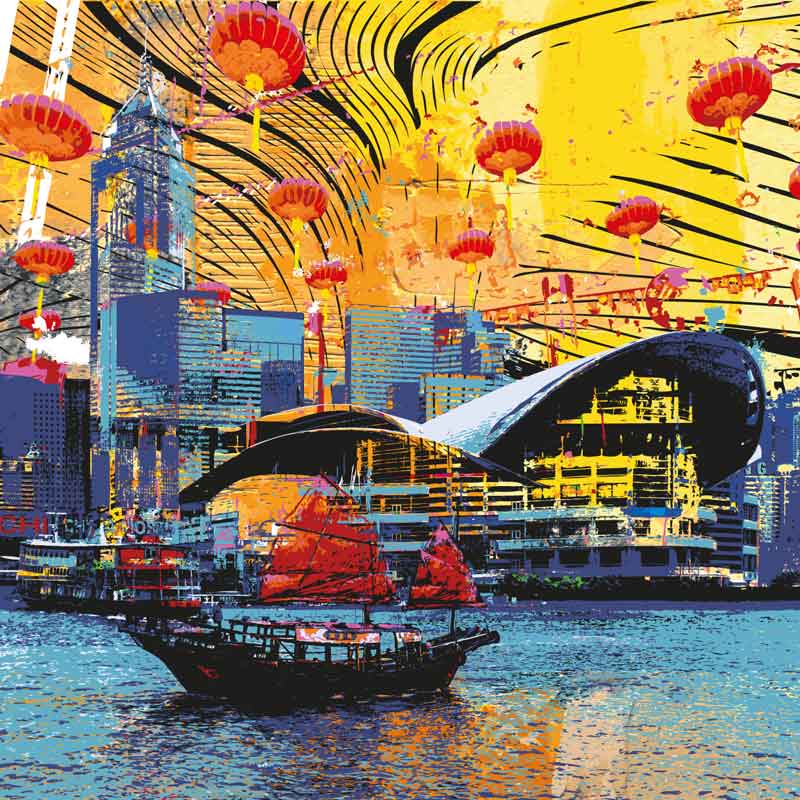 Hongkong Impressionen, Alu-Dibond mit Lack gehöht, serielles Unikat, handsigniert, 100 x 100 cm, Preis auf Anfrage