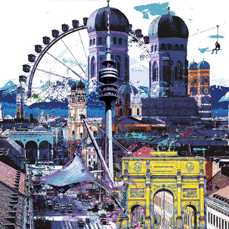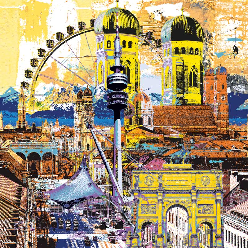 München Impressionen, Alu-Dibond mit Lack gehöht, serielles Unikat, handsigniert, 100 x 100 cm, Preis auf Anfrage
