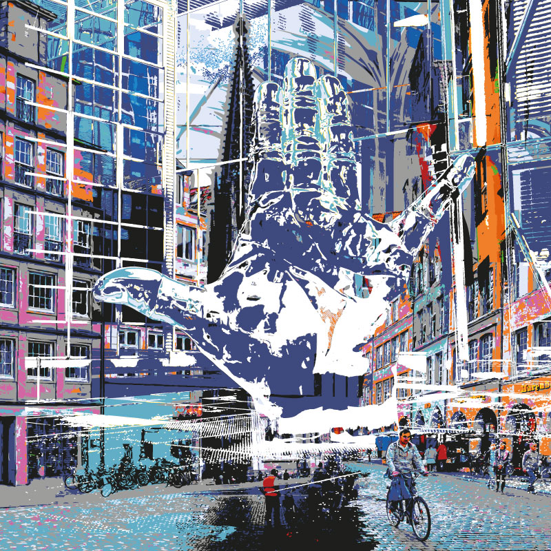 Impressionen aus Münster mit der Hand-Skulptur von DUK Kyu Ryan, Körper und Seele, Alu Dibond mit Lack gehöht, 70 x 70 cm, nummeriert und handsigniert, Preis auf Anfrage