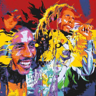 Portrait von Bob Marley, serielles Unikat auf Alu-Dibond partiell mit Lack gehöht und geätzt, 100 x 100 cm, handsigniert, Preis auf Anfrage.