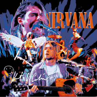 Kurt Cobain mit Nirvana, Alu-Dibond mit Lack gehöht und geätzt,70 x 70 cm, nummeriert und handsigniert, Preis auf Anfrage