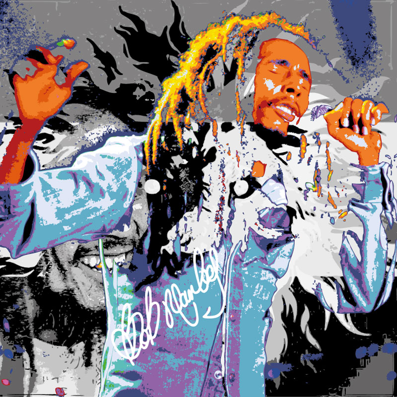 Bob Marley, Alu-Dibond mit Lack gehöht und geätzt, 40 x 40 cm, handsigniert, Preis auf Anfrage